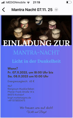 gemeinsamen Rezitation des Mantras die Kraft deiner Selbstheilung. Es können sich innere Blockaden lösen.