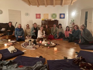 Wir singen zu Beginn einige Heilmantras zur Eröffnung des Heilraumes.